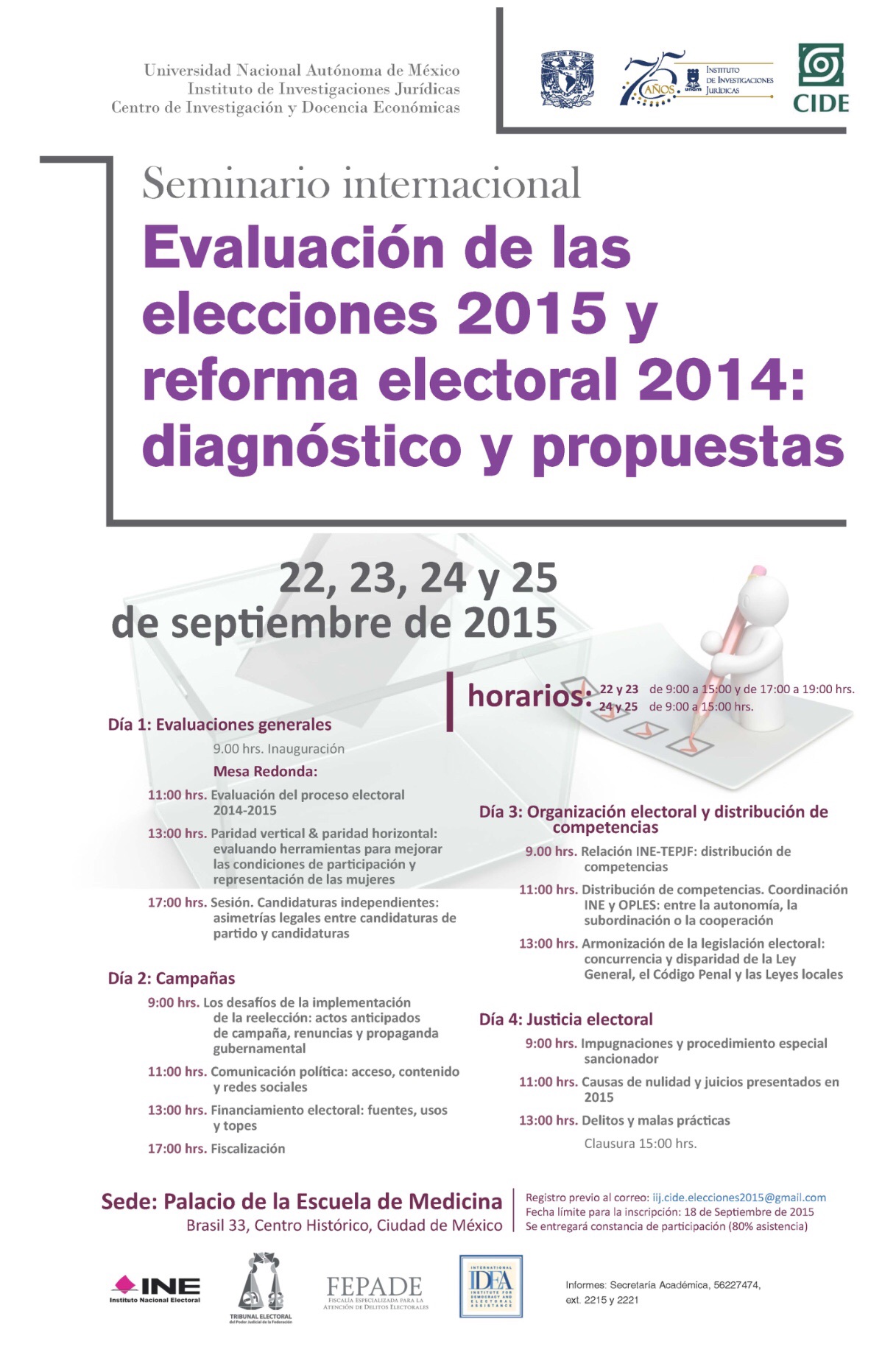 El IIJ y el CIDE convocan al Seminario internacional «Evaluación de las elecciones 2015 y reforma electoral 2014: diagnóstico y propuestas»