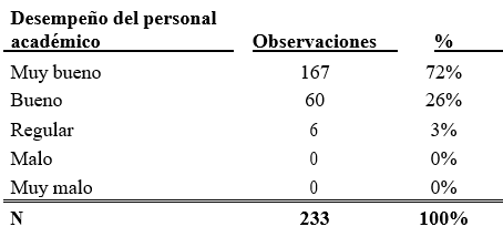 En cuanto al desempeño del personal administrativo, 57% lo considera muy bueno, 32% bueno, 9% regular y 3% malo. Por tanto, el desempeño del personal académico representa un área de oportunidad para mejorar.