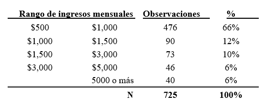Finalmente, el 66% de las usuarias tienen un ingreso mensual que oscila entre los $500 y los