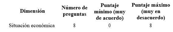 Posteriormente, el puntaje correspondiente a las preguntas de cada dimensión se sumó para obtener el puntaje total de cada dimensión.
