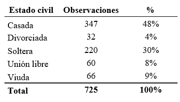 En cuanto al estado civil, el 48% de las usuarias están casadas, el 30% solteras, el 9% viudas, el 8% viven en unión libre y solo el 4% están divorciadas. Estas cifras son consistentes con los datos del censo nacional 2020 del INEGI.